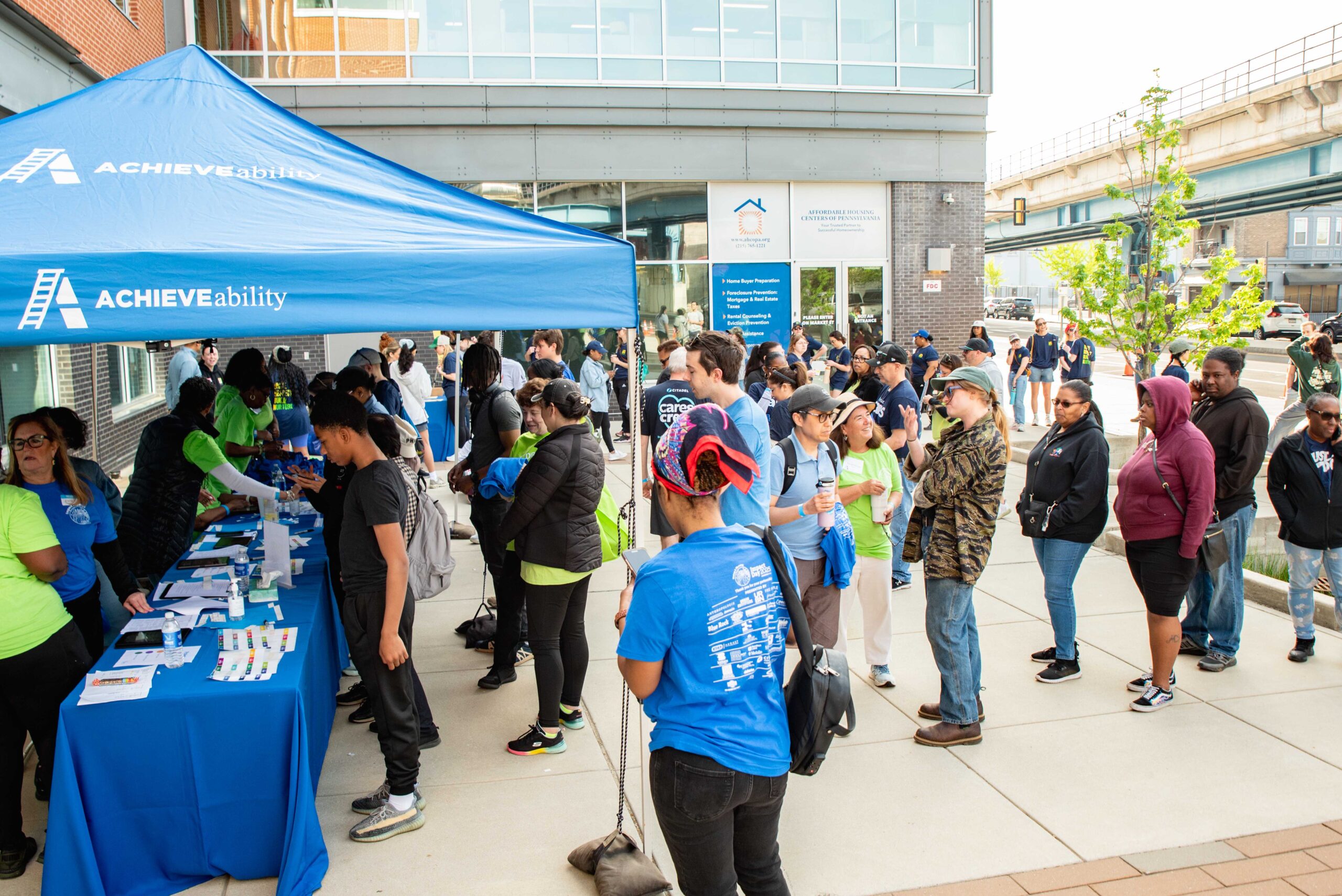ACHIEVEability’s Annual Impact Day brought together the power of community, service, and collective action as more than 500 volunteers united to revitalize neighborhoods across West Philadelphia. Volunteers from organizations across the city rolled up their sleeves for a full day of service, supporting 20–30 community sites through block beautification, porch renovations, park cleanups, and tending to community gardens.